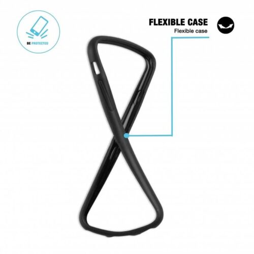 Sort bumper-etui i stødabsorberende lettere blødt plastmateriale. Beskytter kanterne og har anti-shock funktion. Perfekt tæt pasform der kun øger mobilens størrelse meget lidt.  Passer til iPhone 8, 7 og 6/6S