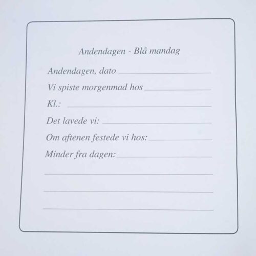 Indeholder 60 hvide sider til indklæbning. De første 4 sider er fortrykt med danske tekst sider der kan udfyldes med information om dagen. Forsiden i en rose nuance. Goldbuch er kendt for deres høje kvalitet, som kunder i hele Europa, sætter pris på. Dette album er syet i ryggen, hvilket giver en lang levetid til albummet