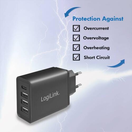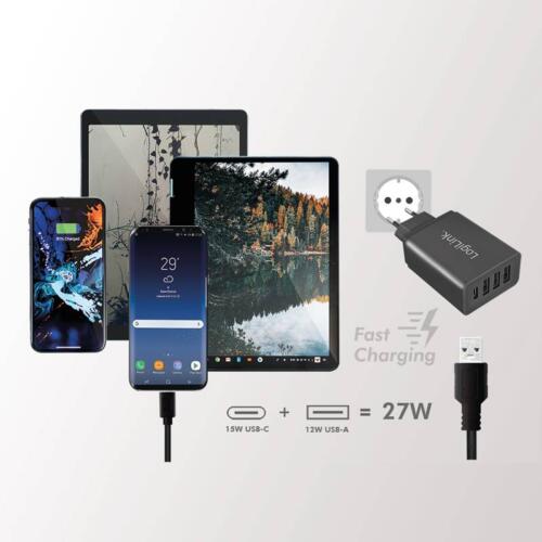LOGILINK 220V OPLADER 3XUSB-A 1XUSB-C 27W FAST CHARGE